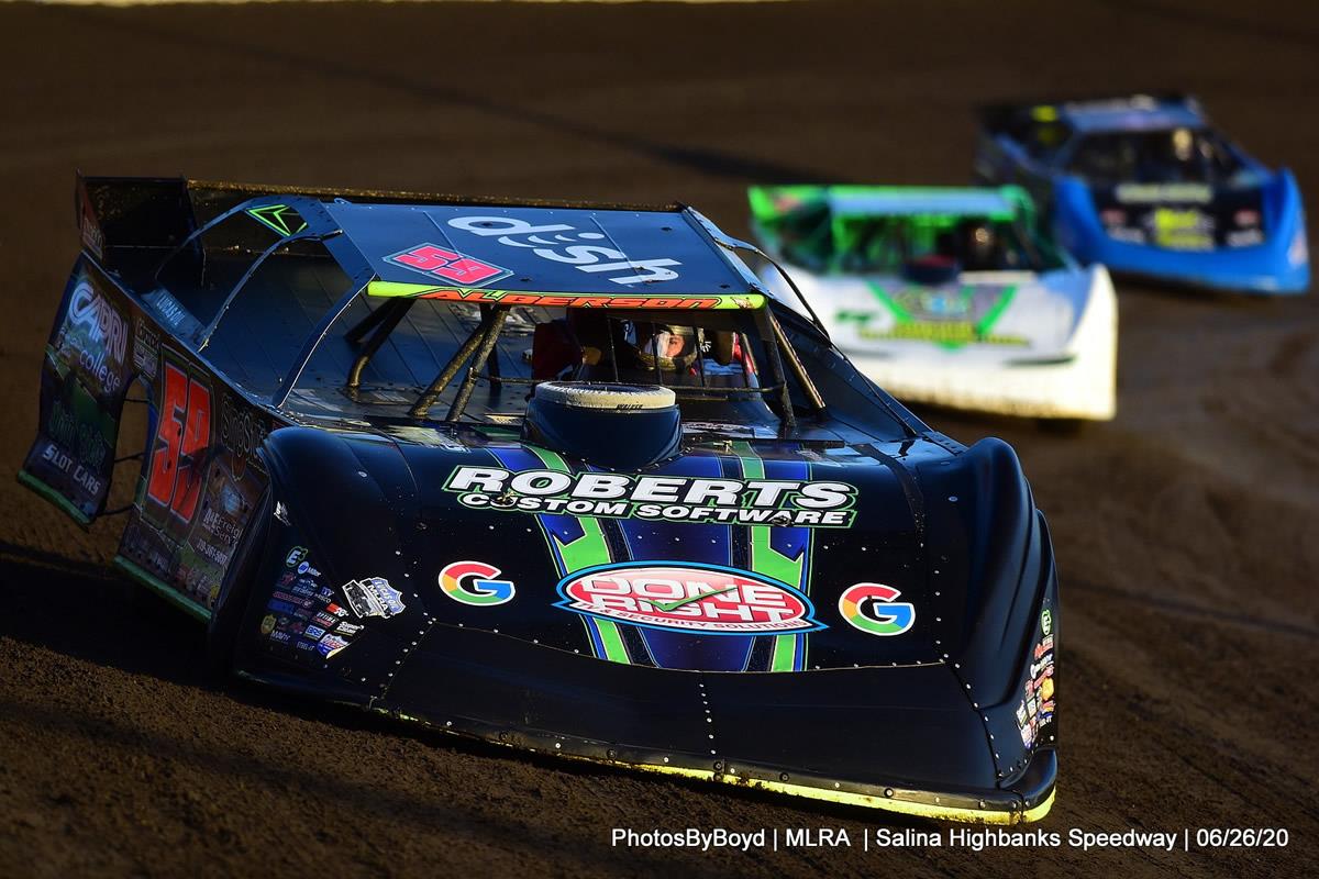 The following night at Salina Highbanks Speedway for the two-day ARMI Freedom Classic, Garrett jumped up four spots in his heat to place third. Gaining two positions in the 30-lap feature, Alberson posted a 10th place finish.