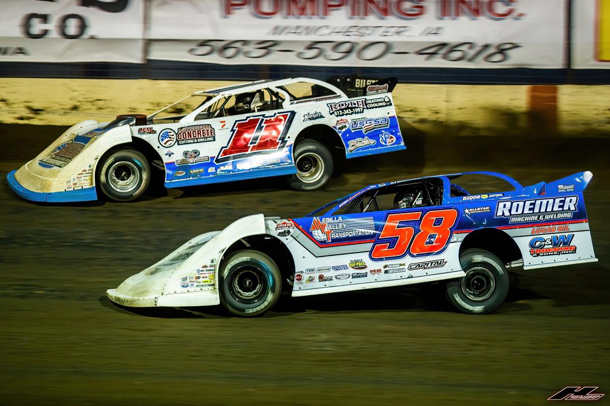 Garrett Alberson returned to action in the Hawkeye State on Friday evening at 300 Raceway (Farley, Iowa) for the Lucas Oil Late Model Dirt Series (LOLMDS) sanctioned Truck Country 50. With a fifth-place finish in his heat race pinning him on the eighth row for the $12,000-to-win A-Main, Alberson marched through the field nine spots in the 50-lapper to finish sixth. (Heath Lawson photo)