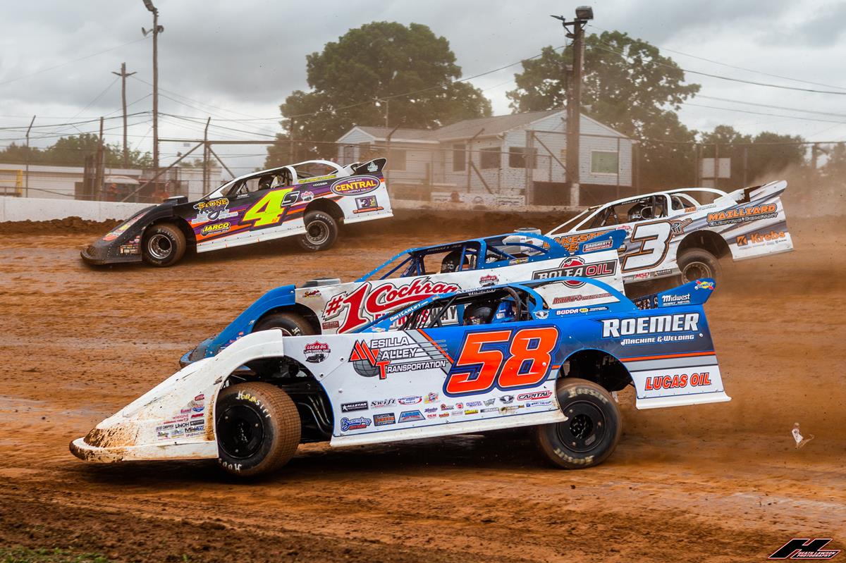 Starting 12th in his rain-delayed A-Main, Garrett gained five positions in the 25-lap affair to finish seventh.
