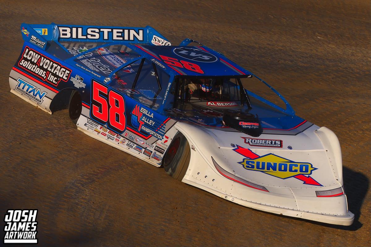 Alberson kept his pace up on Saturday evening as he once again qualified second-quickest in his group and took home a heat race victory. Starting fourth in the $30,000-to-win finale, Garrett rounded out the Top-5 with a fifth-place finish. He trailed Ricky Thornton Jr., Zack Mitchell, Jonathan Davenport, and Hudson O'Neal.